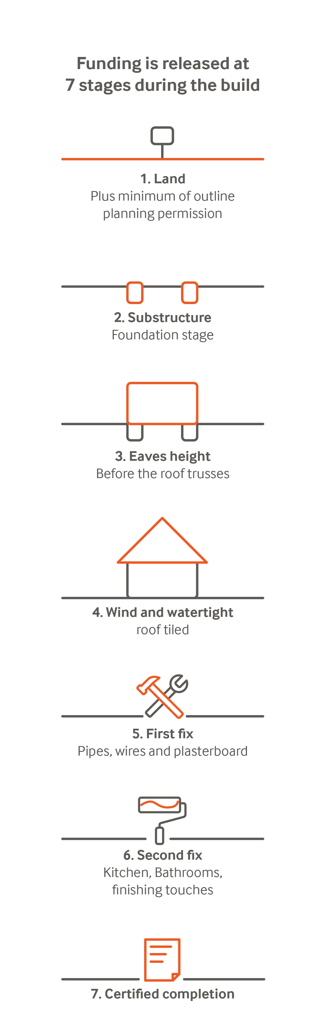 Self-build mortgages are designed to help people construct their own homes. They differ from traditional mortgages in several key ways, including having different eligibility criteria and products available. With self-build mortgages, it’s important to consider what is involved and how they work. Below, we will highlight the key stages involved and what borrowers can expect. The 7 key stages are;